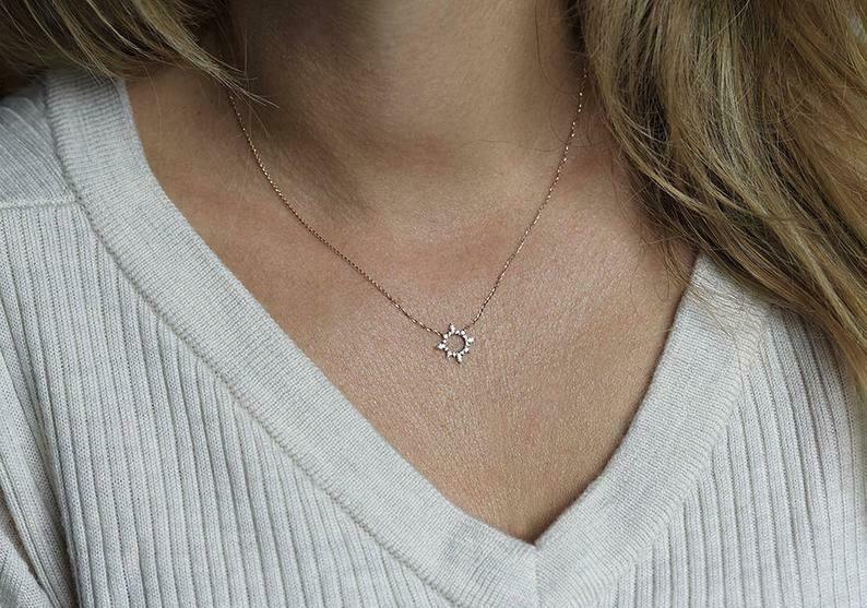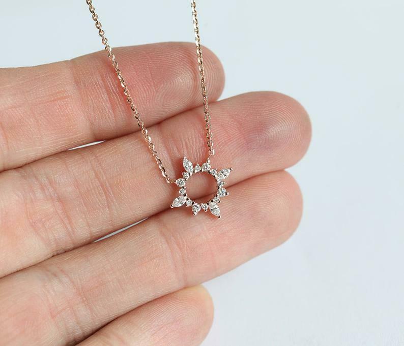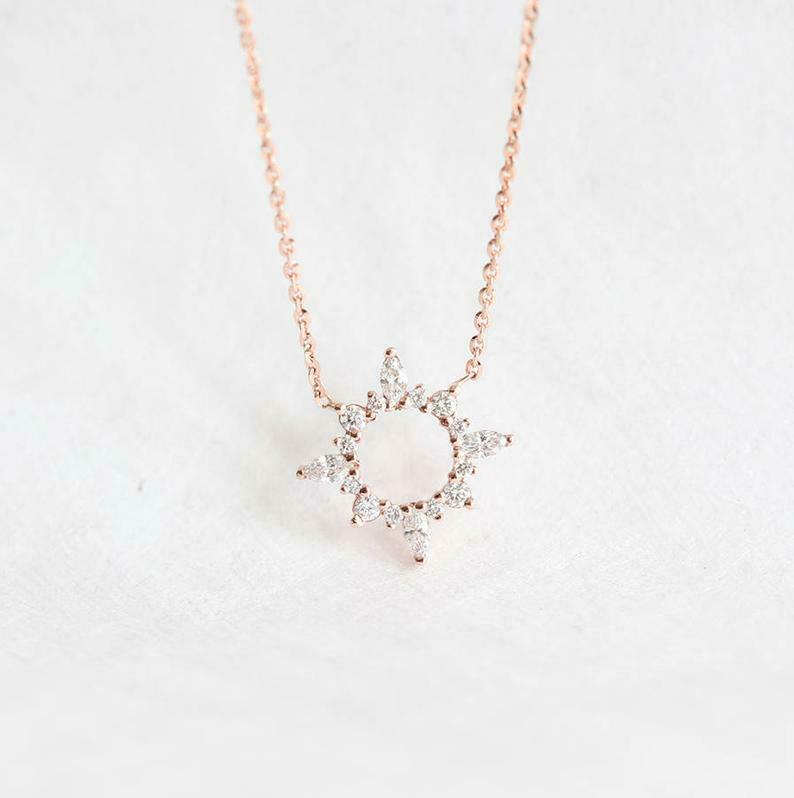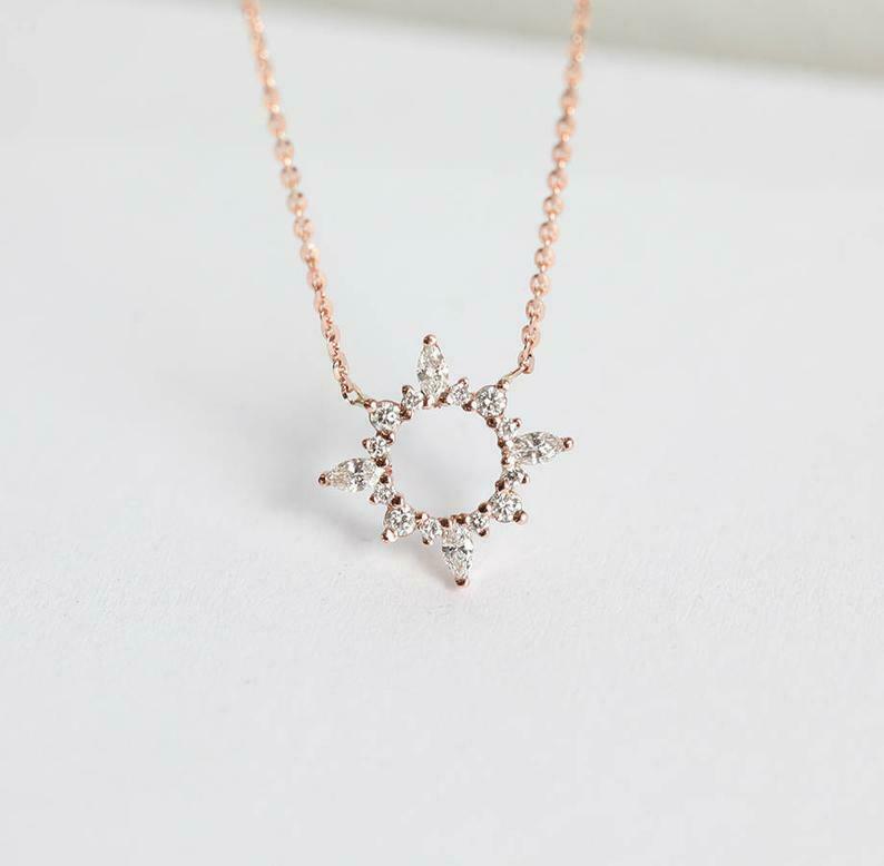 1.4ct Marquise Cut Diamond Pendant with Chain Open Circle 14k Rose Gold Finish