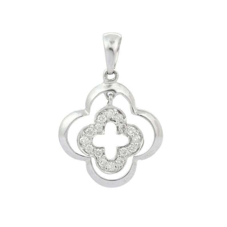1.5ct Diamond Pendant Round Cut Cross Floral 14k White Gold Finish NO CHAIN