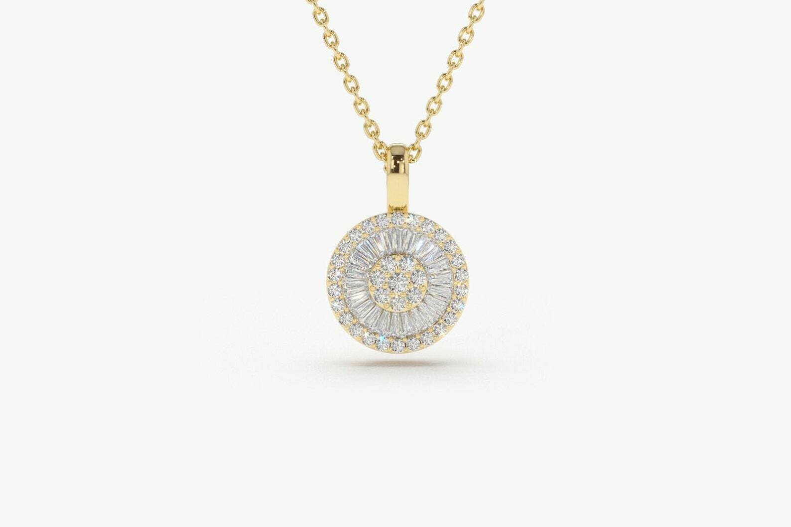 1.5ct Diamond Pendant with Chain Round Cut Disc Channel Set 14k Yellow Gold Over