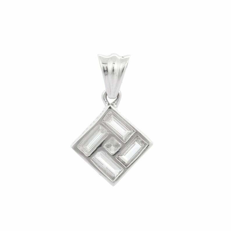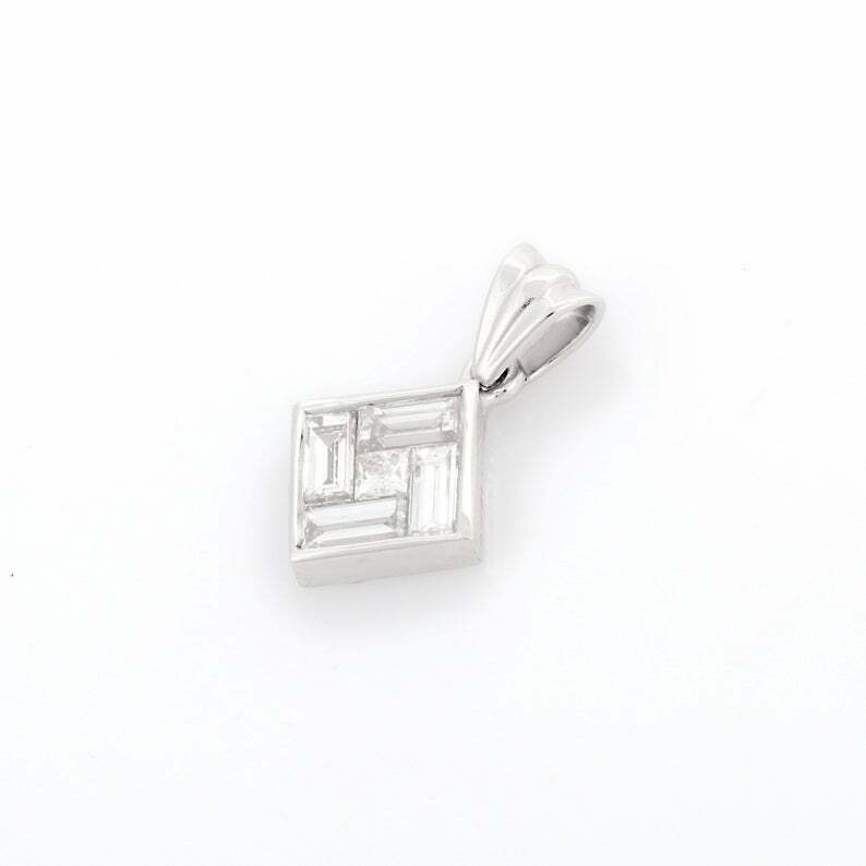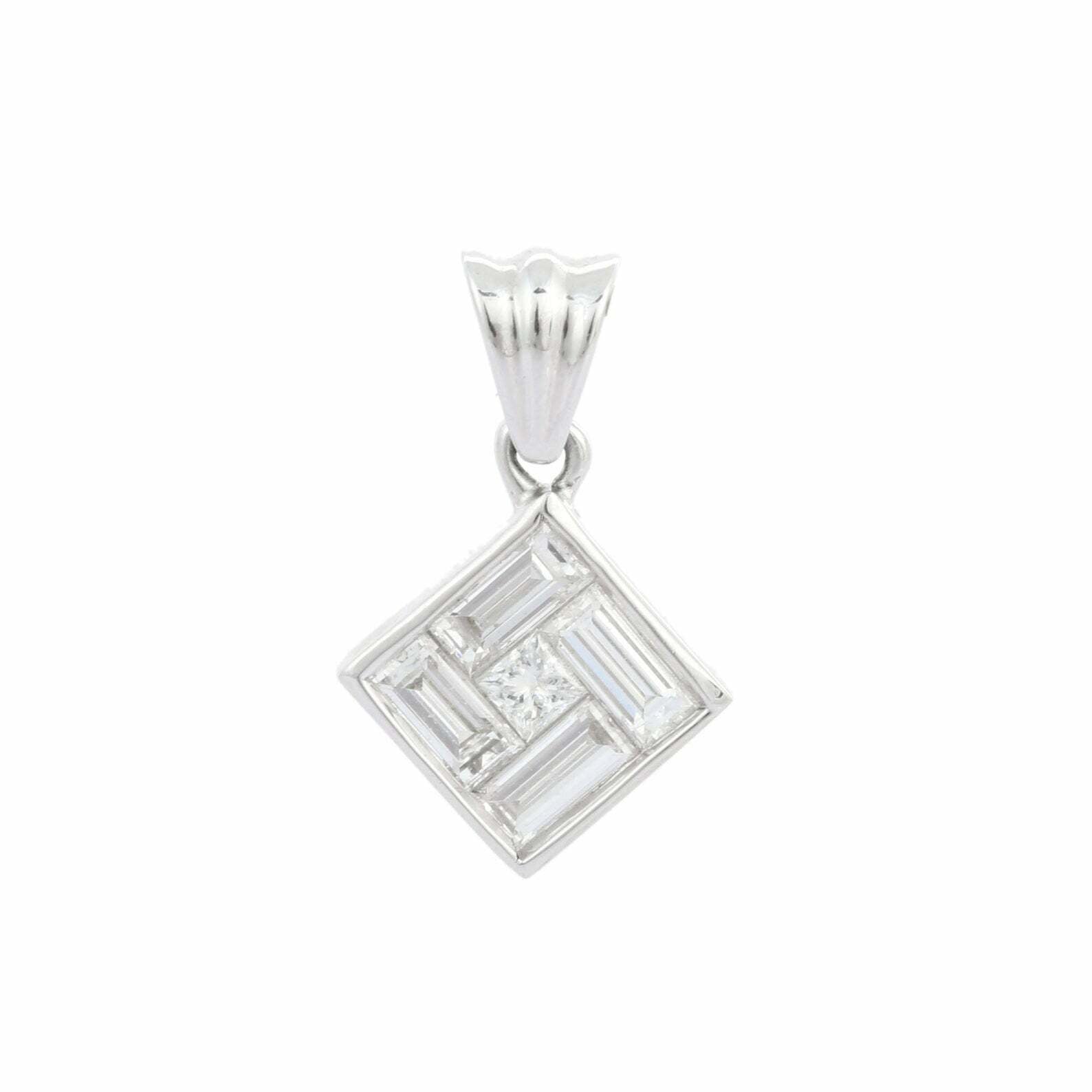 1.6ct Diamond Pendant Baguette Cut Geometric 14k White Gold Finish NO CHAIN