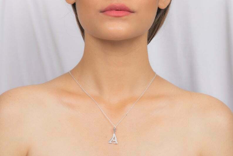 1.6ct Round Cut Diamond Custom Alphabet Pendant 14k White Gold Finish NO CHAIN