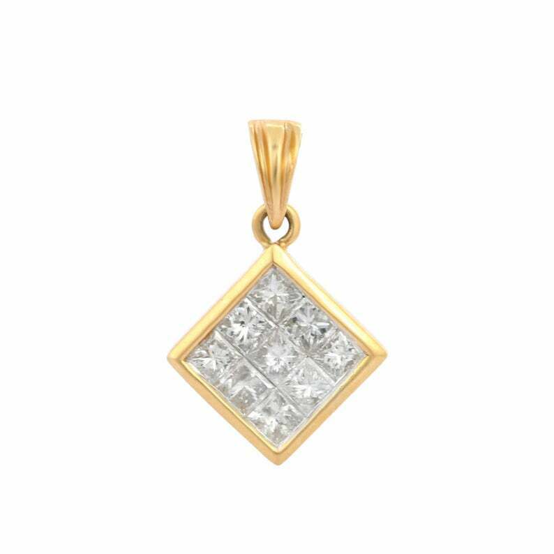 1.75ct Diamond Pendant Princess Cut Tile Design 14k Yellow Gold Finish NO CHAIN