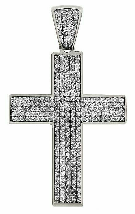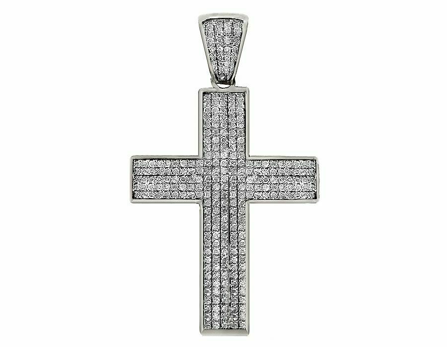 1.7ct Round Cut VVS1D Diamond Pendant Mini Puff Pave Cross 14k White Gold Finish