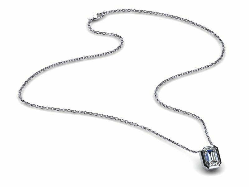 1ct Diamond Pendant Chain Emerald Cut Bezel Set Solitaire 14k White Gold Finish