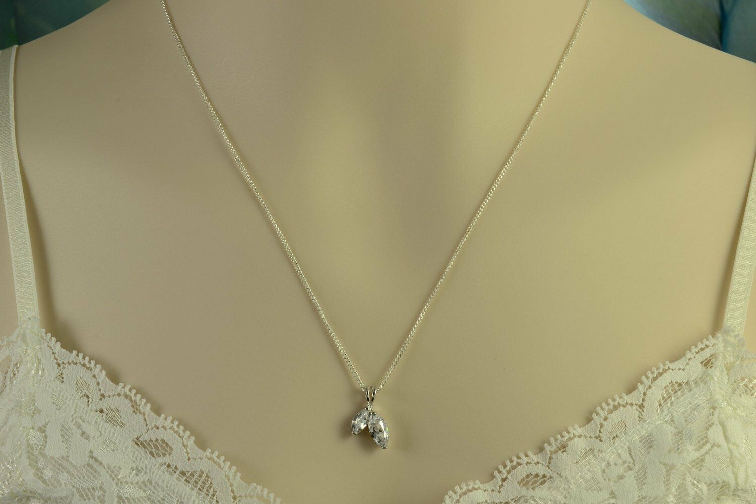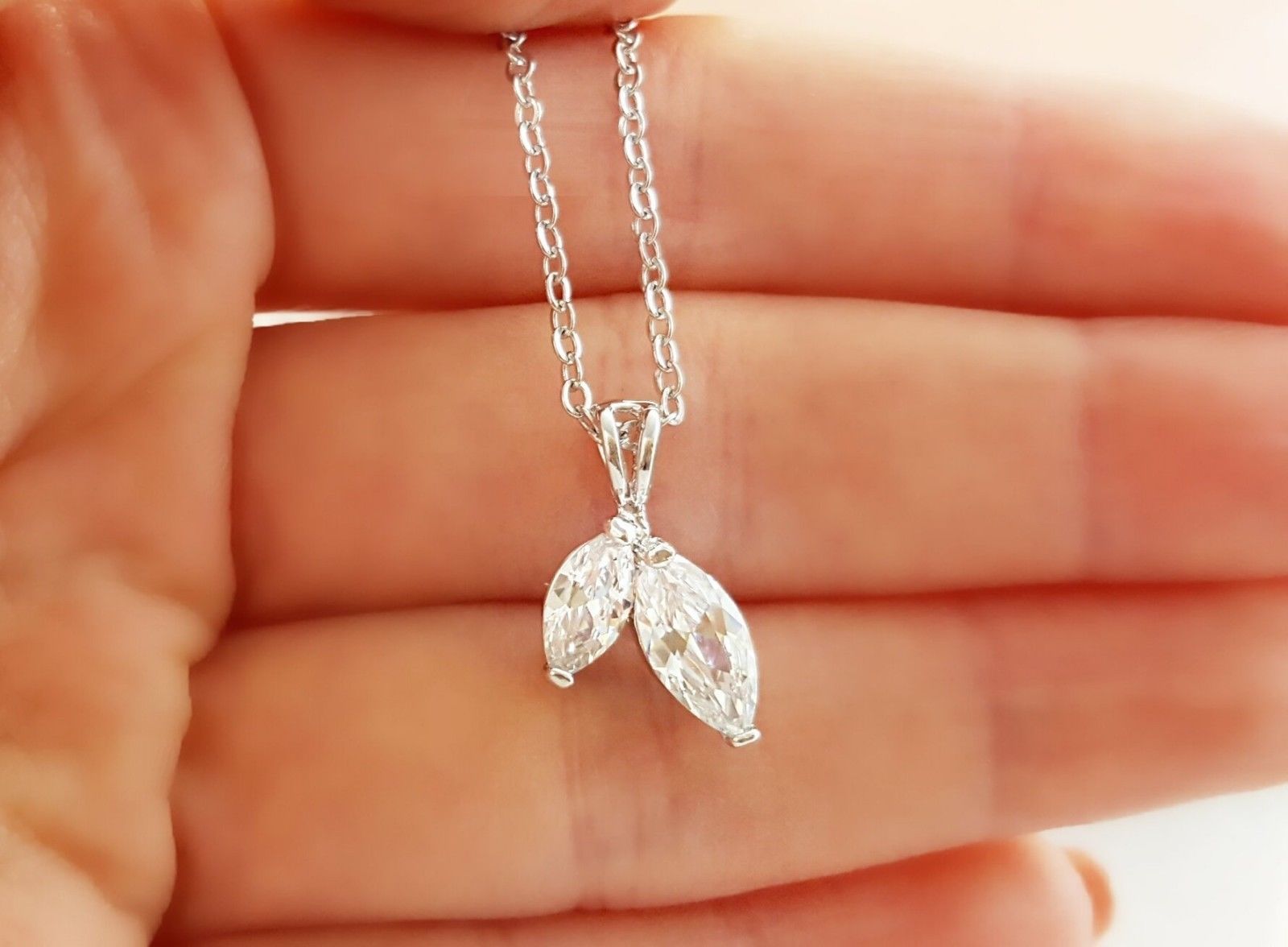 1ct Marquise Cut Diamond Dual Solitaire Minimal Pendant 14k White Gold Finish