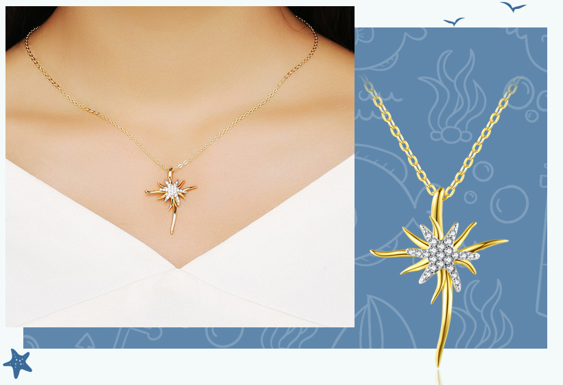 1ct Round Cut Diamond Starfish Unique Design Pendant Chain 14k YellowGold Finish