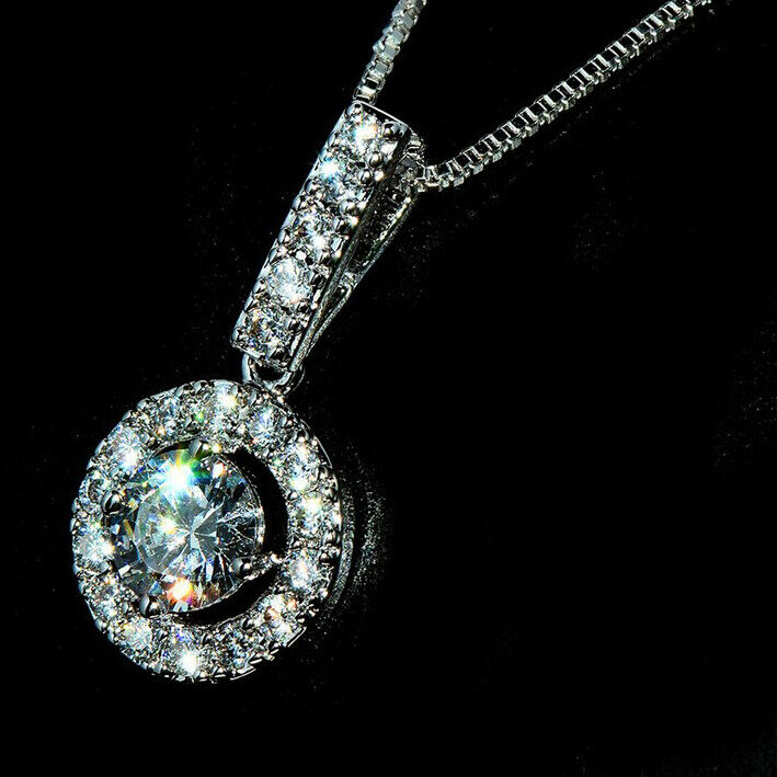 2.3ct Round Cut VVS1D Diamond Pendant Halo Fancy 14k White Gold Finish NO CHAIN