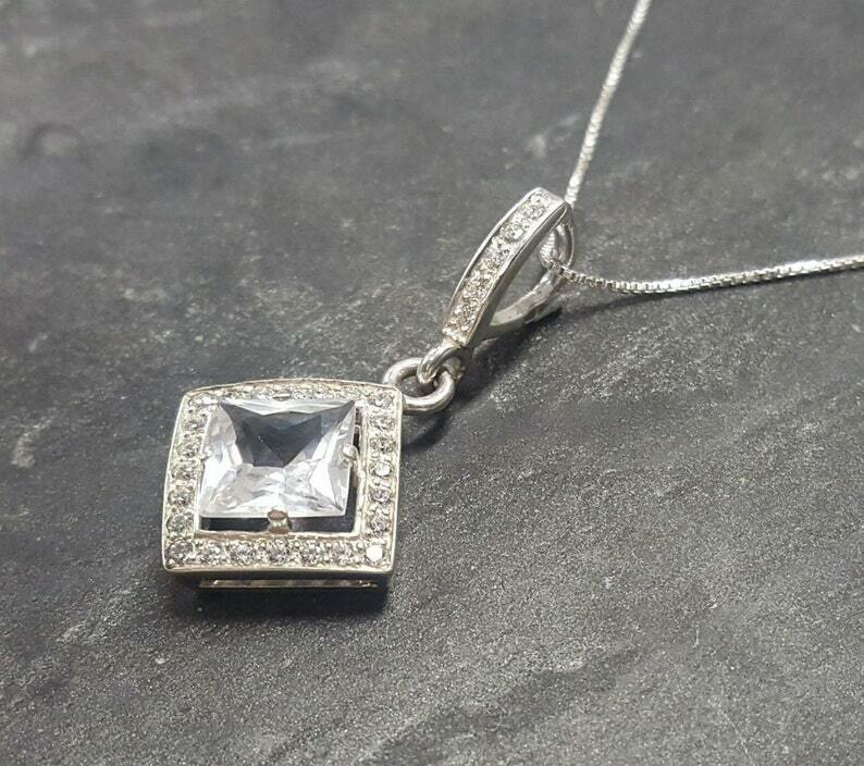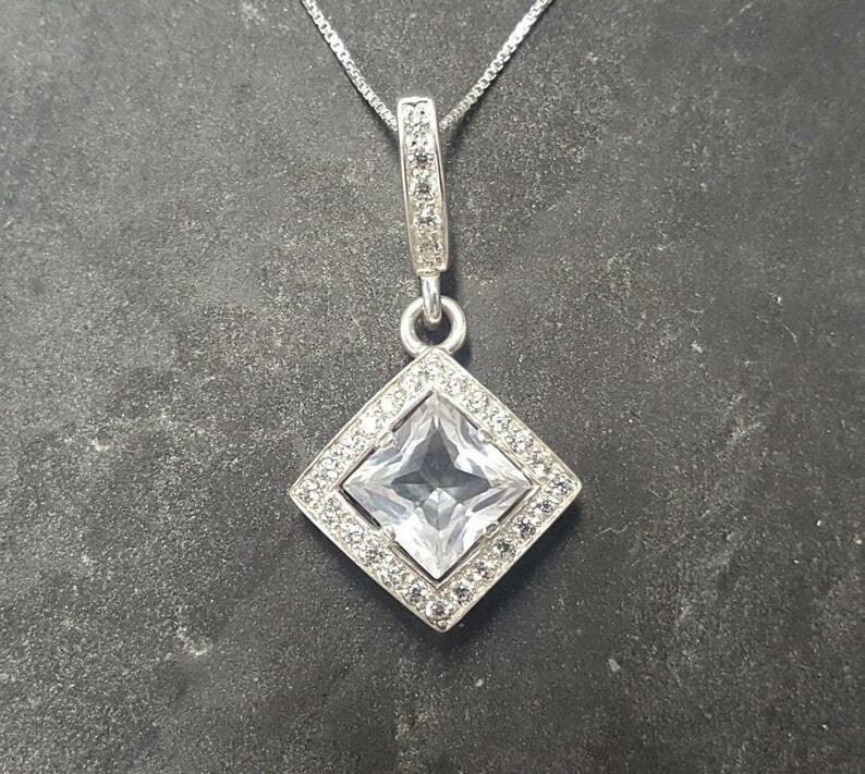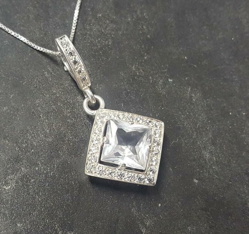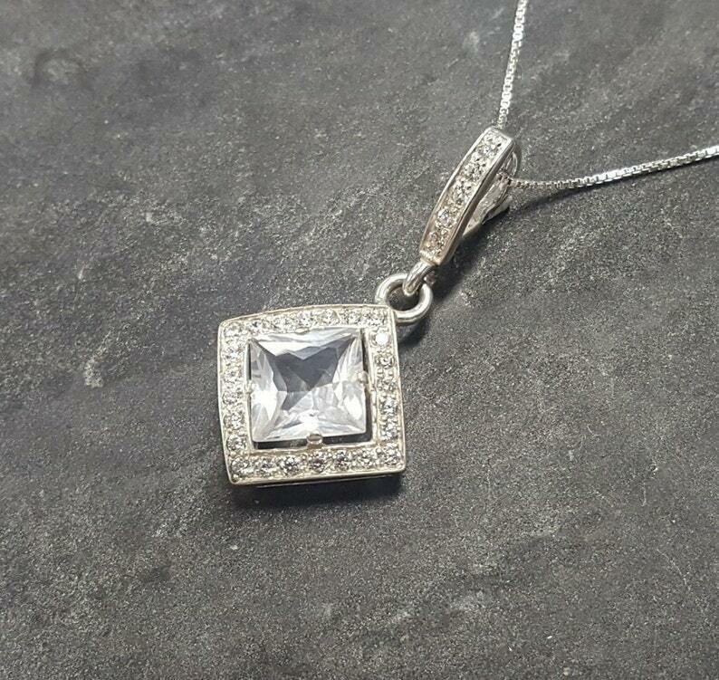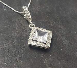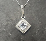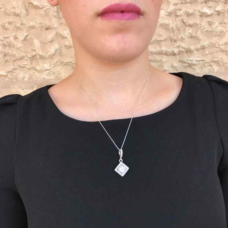 2.6ct Diamond Pendant Princess Cut Brilliant Halo 14k White Gold Finish NO CHAIN