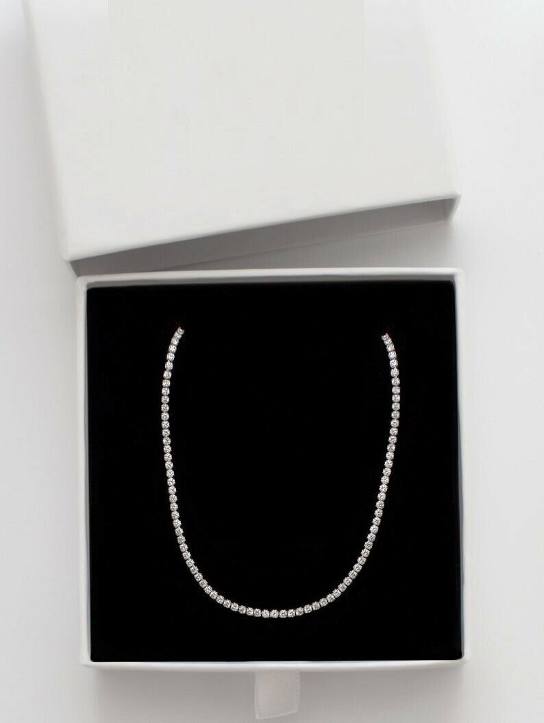 25Ct Round Cut VVS1/D Diamond Tennis Necklace 14K White Gold Finish