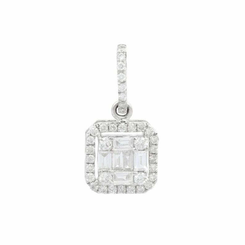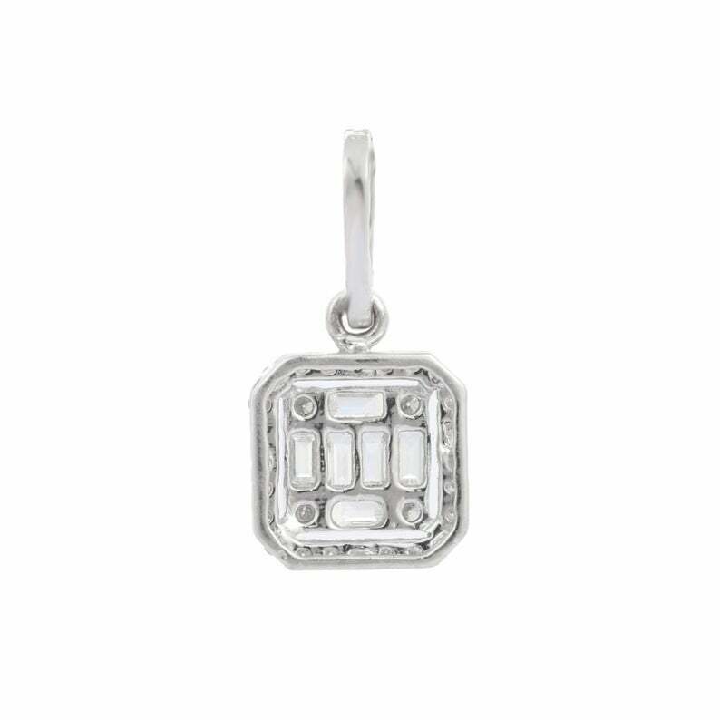 2ct Diamond Pendant Baguette Cut Brilliant Halo 14k White Gold Finish NO CHAIN