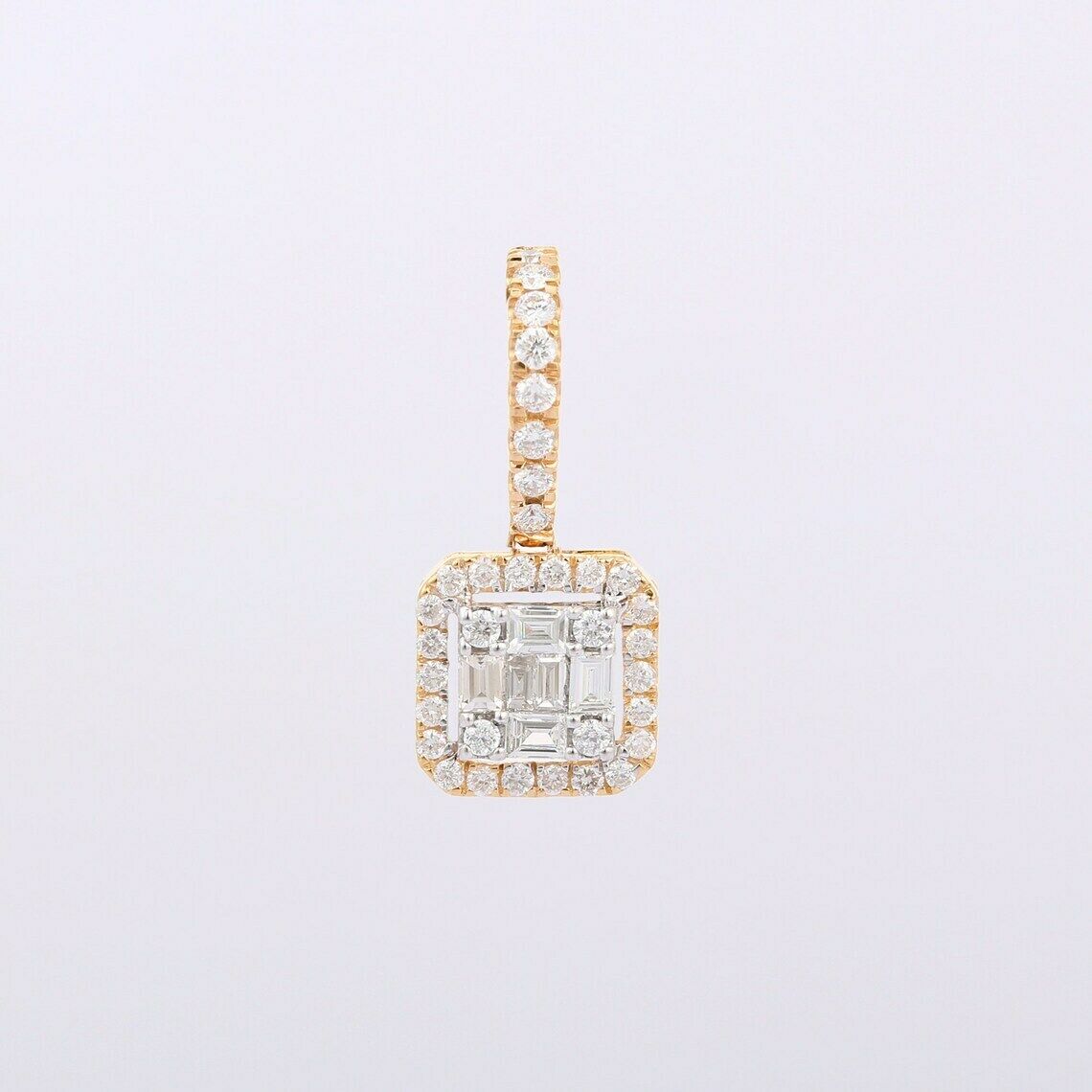 2ct Diamond Pendant Baguette Cut Brilliant Halo 14k Yellow Gold Finish NO CHAIN