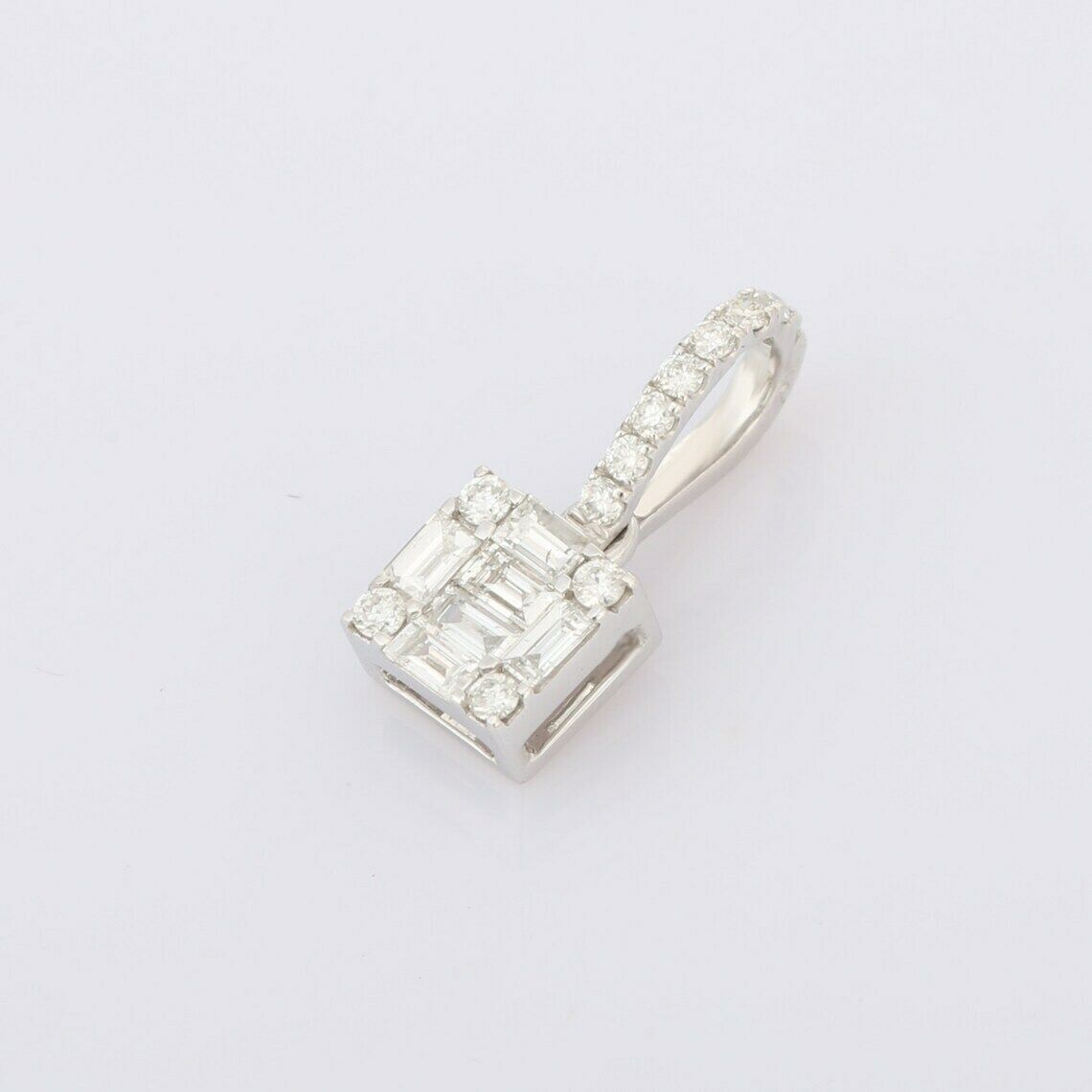 2ct Diamond Pendant Baguette Cut Geometric 14k White Gold Finish NO CHAIN