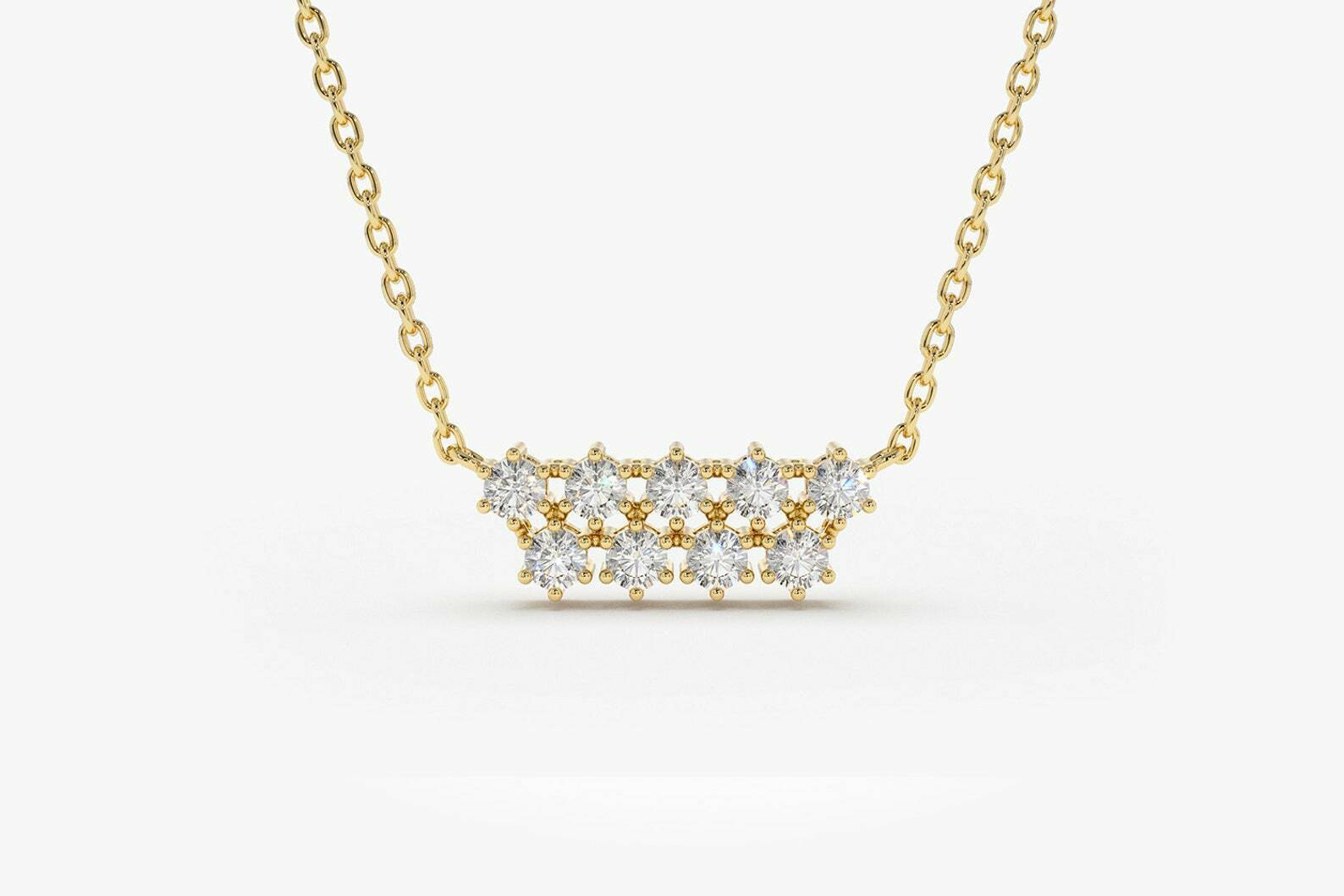 2ct Diamond Pendant with Chain Round Cut Brilliant Cluster 14k Yellow Gold Finish