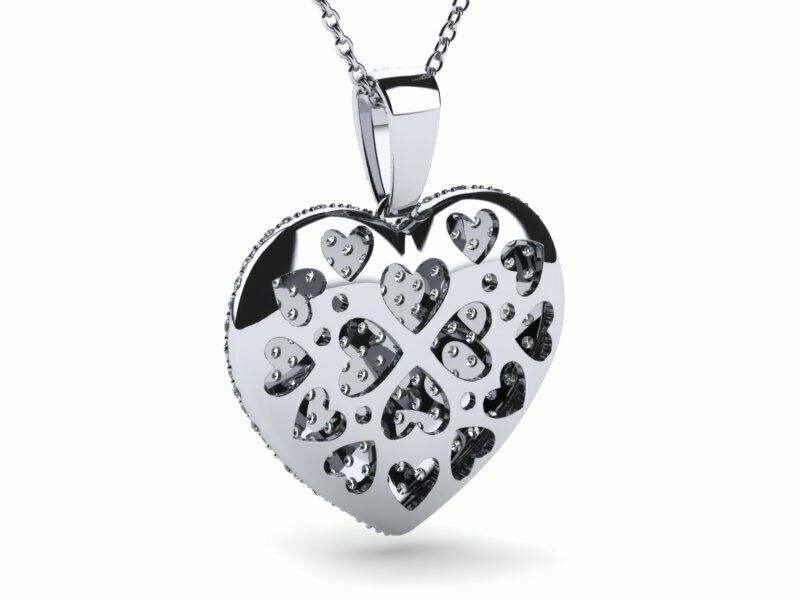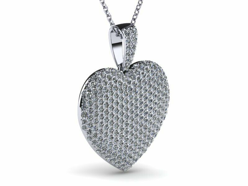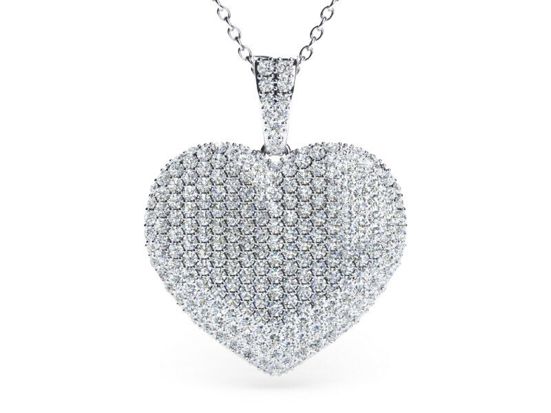 2ct Diamond Round Cut Brilliant Puff Heart Pendant with Chain 14k WhiteGold Over