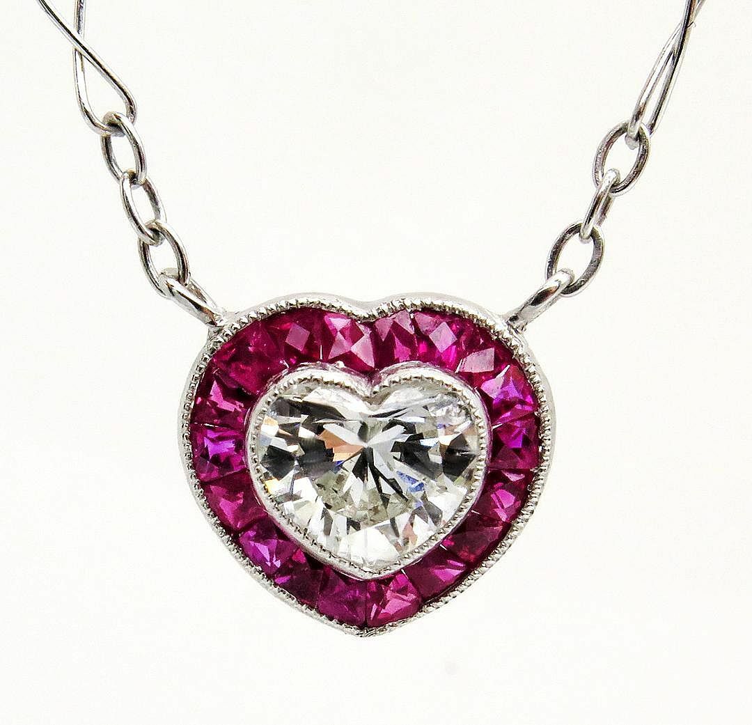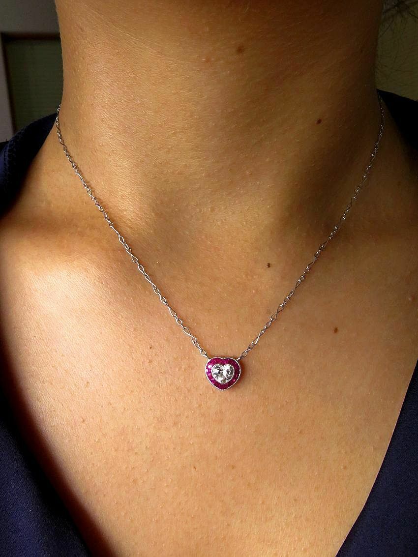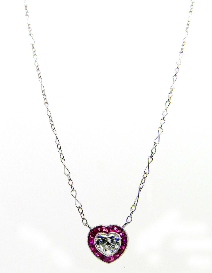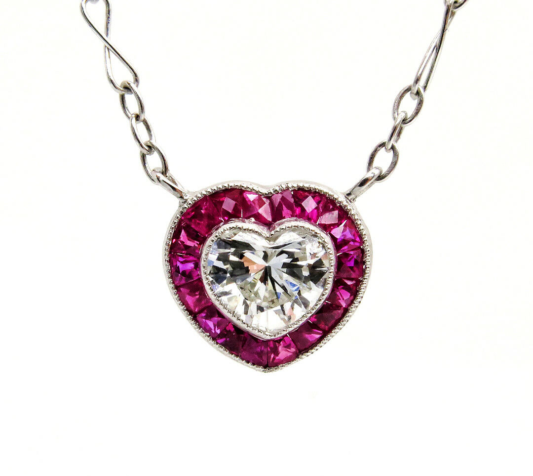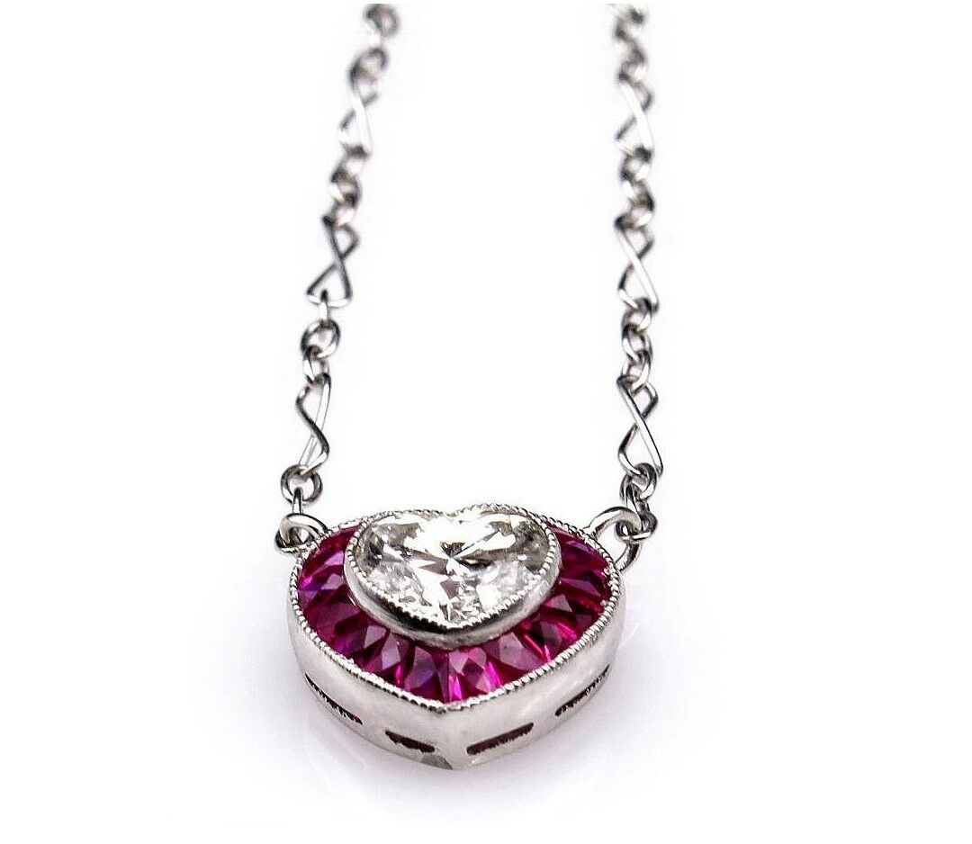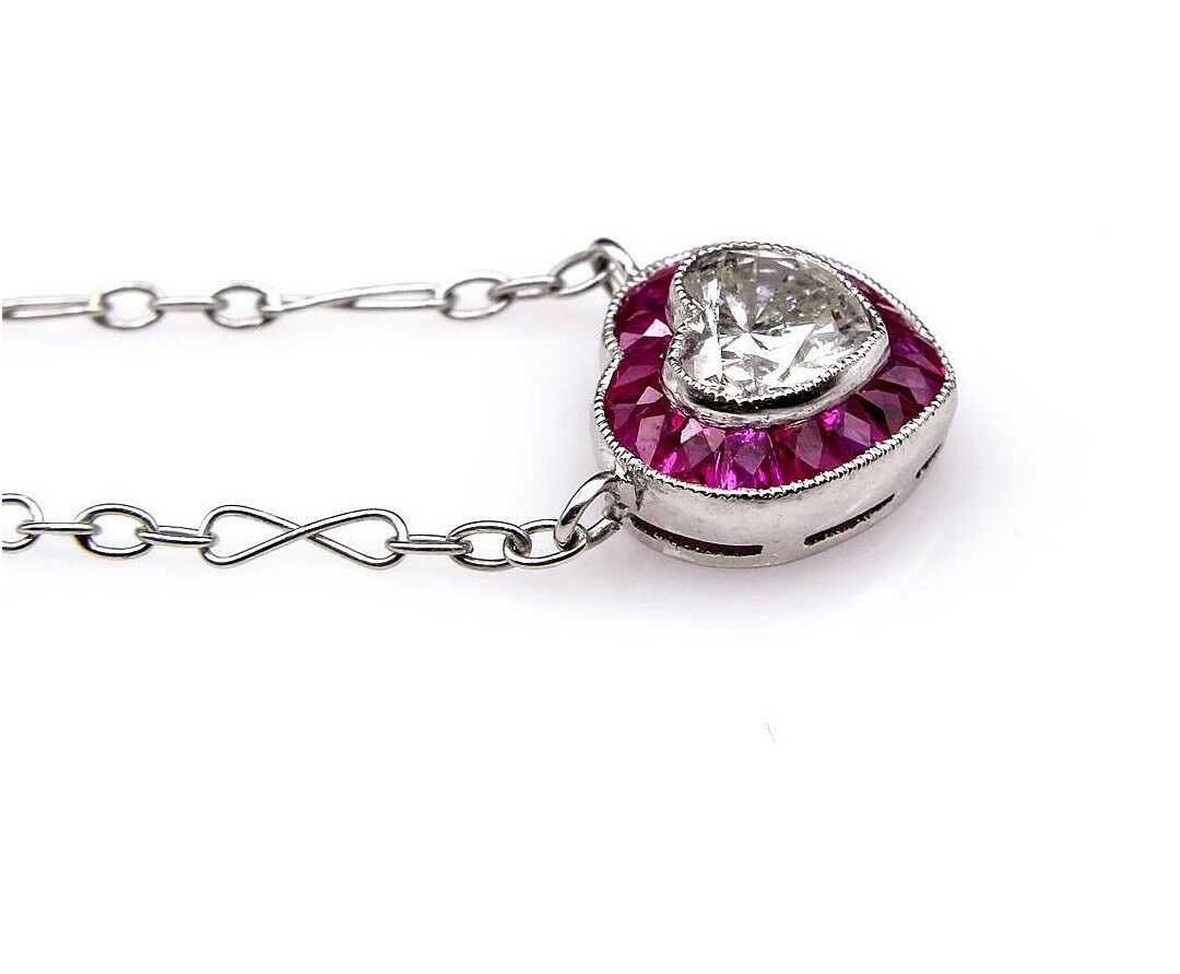 2ct Heart Cut Diamond Ruby Love Halo Pendant 14k White Gold Finish NO CHAIN