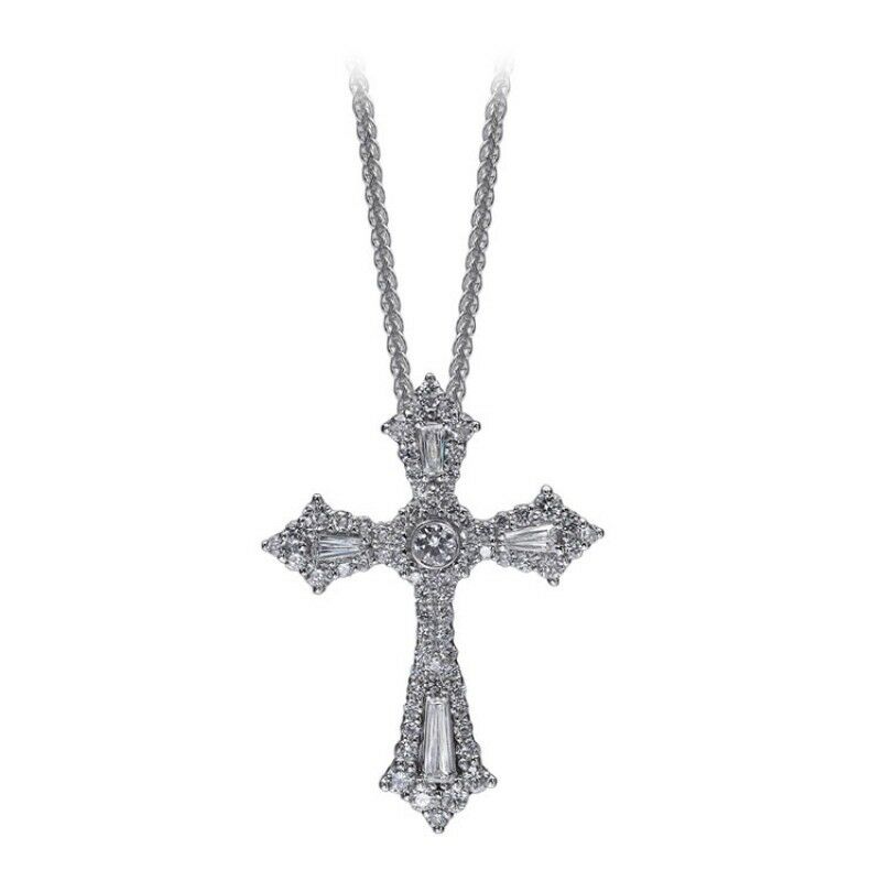 2ct Round Baguette Diamond Holy Cross Jesus Christ Pendant 18k White Gold Finish