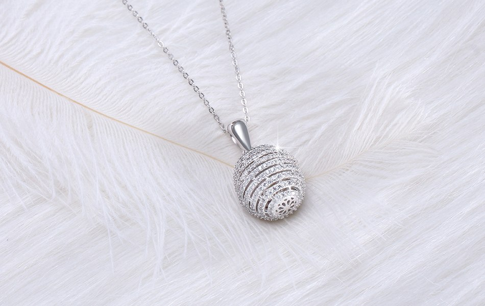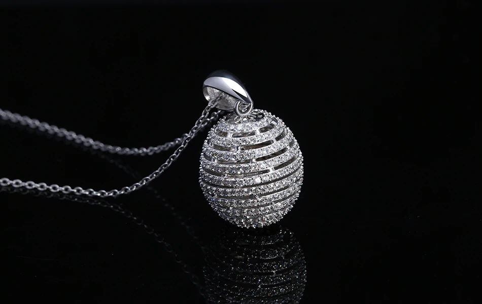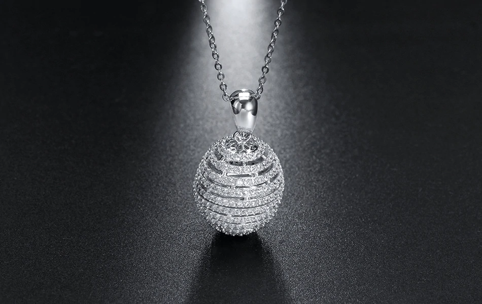 2ct Round Cut VVS1D Diamond Pendant Ball Shape Hollow Design 14k White Gold Over