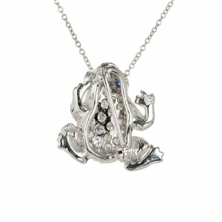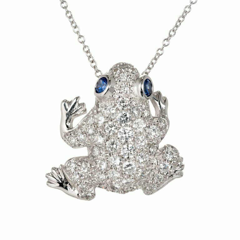 2ct Round Cut VVS1D Diamond Pendant with Chain Frog Design 14k White Gold Finish