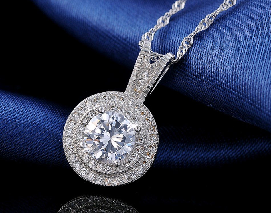 3ct Round Cut VVS1D Diamond Pendant Double Halo 14k White Gold Finish NO CHAIN