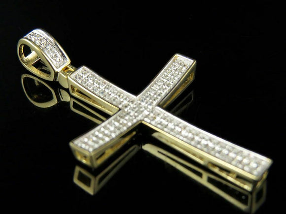 0.75ct Round Cut VVS1D Diamond Pendant Cross Charm 14k Yellow Gold Over NO CHAIN