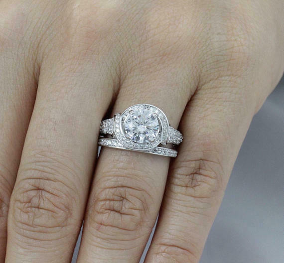 1.6ct Round Cut Diamond Engagement Ring Open Wrap Unique 14k White Gold Finish