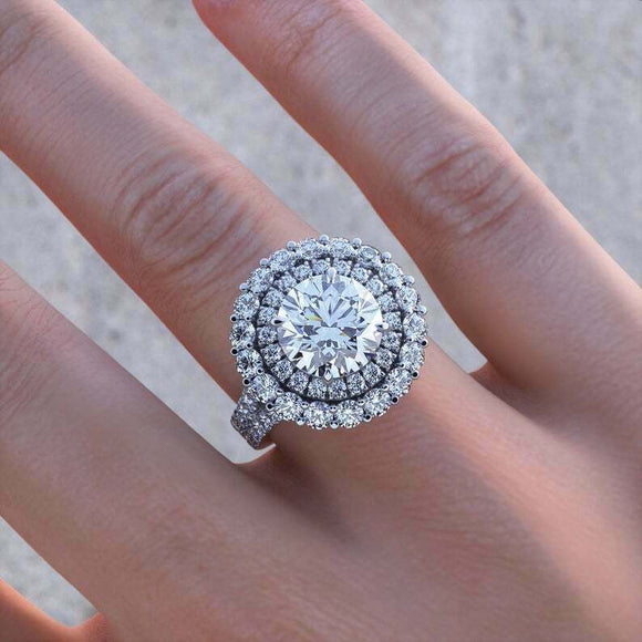 4ct Round Cut Diamond Engagement Ring Double Halo Split Shank 14k WhiteGold Over