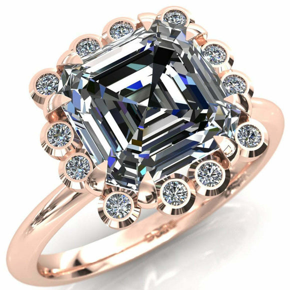 3.35ct Asscher Cut Diamond Engagement Ring Cocktail Halo 14k Rose Gold Finish