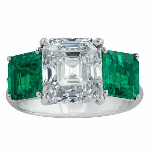3.85ct Asscher Cut Diamond Engagement Ring Unique Trilogy 14k White Gold Finish