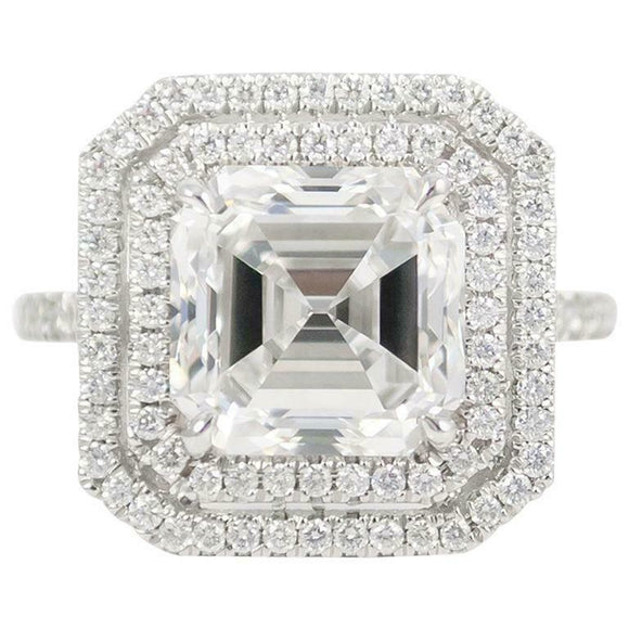 3ct Asscher Cut Diamond Engagement Ring Dual Halo Solitaire 14k WhiteGold Finish