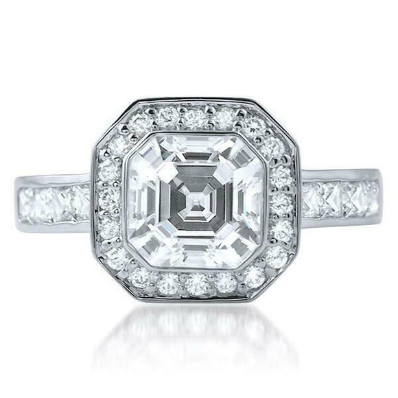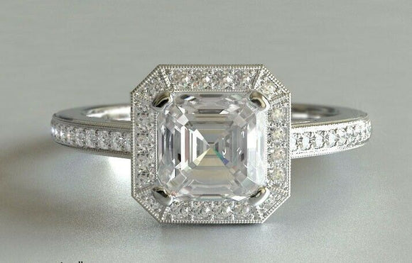 2.5ct Asscher Cut Diamond Engagement Ring Halo Art Deco 14k White Gold Finish