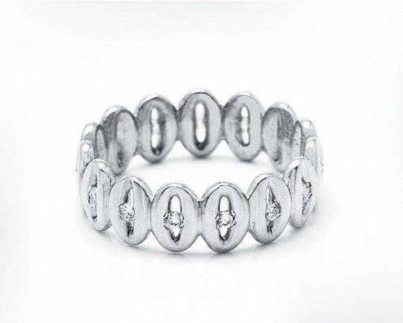 Oval Coffee Bean Design Engagement Ring 1ct Round Cut Diamond 14k WhiteGold Over