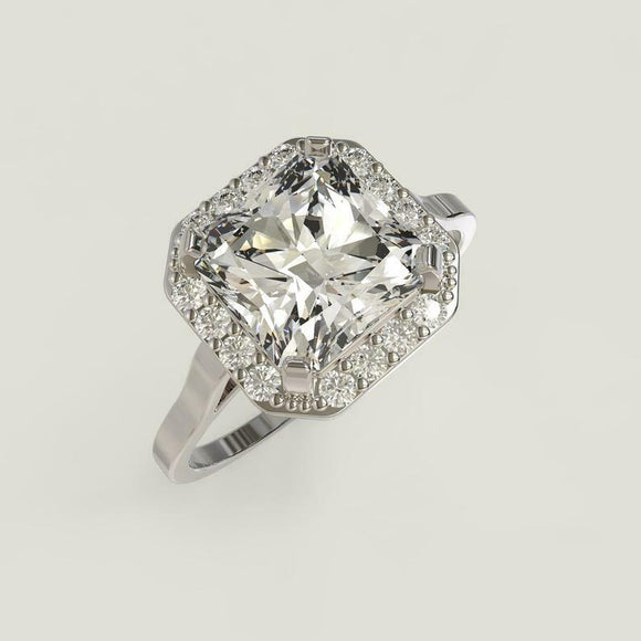 3.35ct Asscher Cut Diamond Engagement Ring Halo Solitaire 14k White Gold Finish