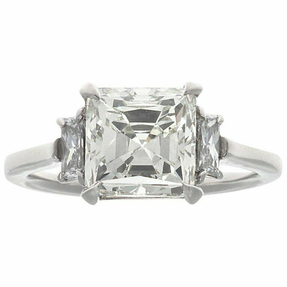 2.3ct Asscher Cut Diamond Engagement Ring Stylish Trilogy 14k White Gold Finish