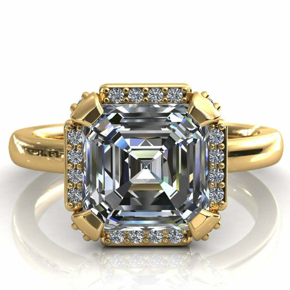 3.45ct Asscher Cut Diamond Accented Halo Engagement Ring 14k Yellow Gold Finish
