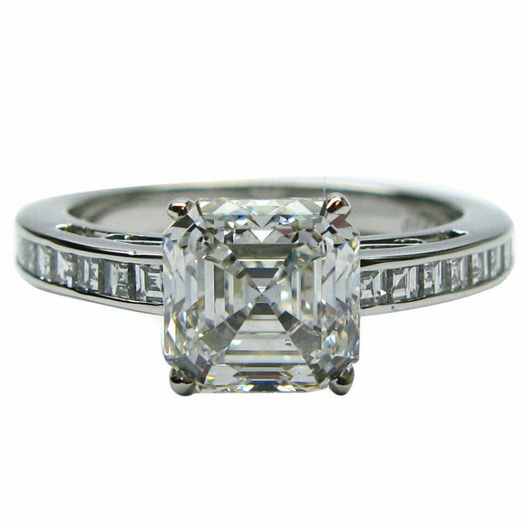 2.2ct Asscher Cut Diamond Engagement Ring Accent Solitaire 14k White Gold Finish