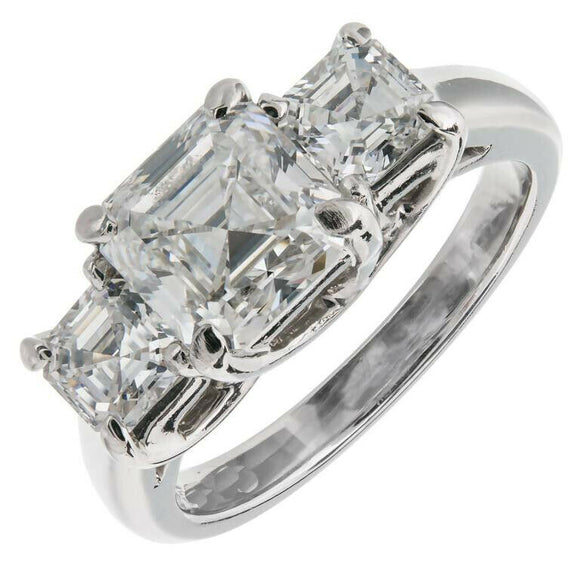 3ct Asscher Cut Diamond Engagement Ring Trilogy Solitaire 14k White Gold Finish