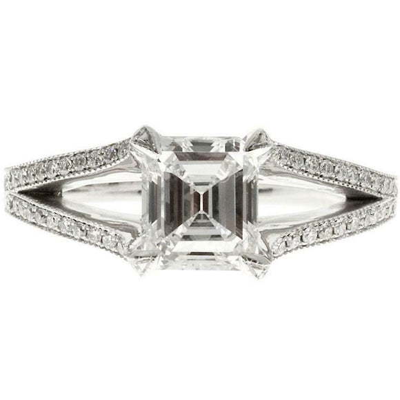 1.2ct Asscher Cut VVS1 Diamond Engagement Ring Split Shank 14k White Gold Finish