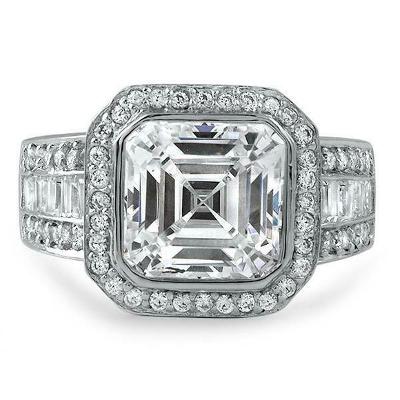 4ct Asscher Cut Diamond Engagement Ring Halo Fancy Solitaire 14k White Gold Over