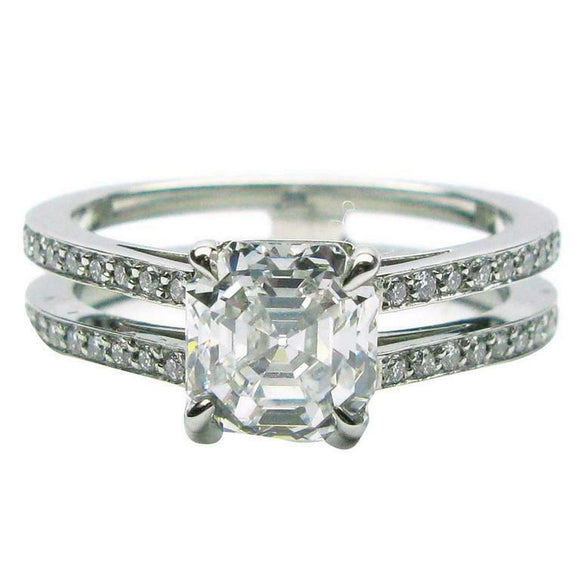 2ct Asscher Cut Diamond Engagement Ring Dual Band Design 14k White Gold Finish