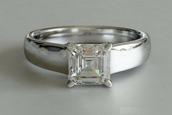 0.5ct Asscher Cut Diamond Engagement Ring 4 Prong Solitaire 14k WhiteGold Finish