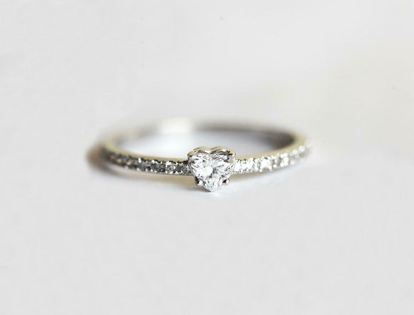 0.5ct Heart Cut Diamond Engagement Ring Accent with Solitaire 14k WhiteGold Over
