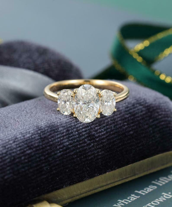 Solitaire Trilogy Engagement Ring 2ct Oval Cut Diamond 14k Yellow Gold Finish