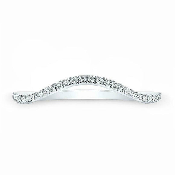 Curved Chevron Stackable Wedding Band 0.7ct Round Cut Diamond 14k WhiteGold Over