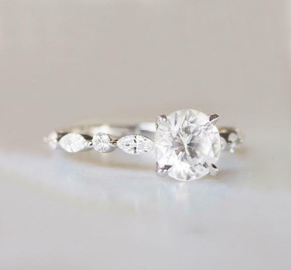 1.4ct Round Cut Diamond Engagement Ring Accent with Solitaire 14k WhiteGold Over