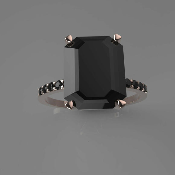 2ct Emerald Black Diamond Engagement Ring Accents Solitaire 14k Rose Gold Finish