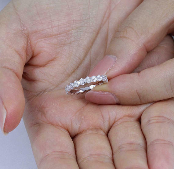 3Ct Round Cut Diamond Unique Petite Eternity Wedding Band 14K White Gold Finish