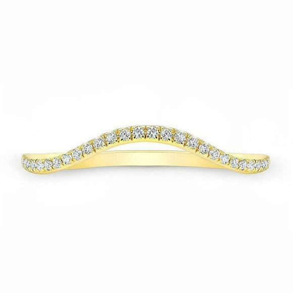 0.7ct Round Cut VVS1 Diamond Wedding Band Stackable Curved 14k YellowGold Finish