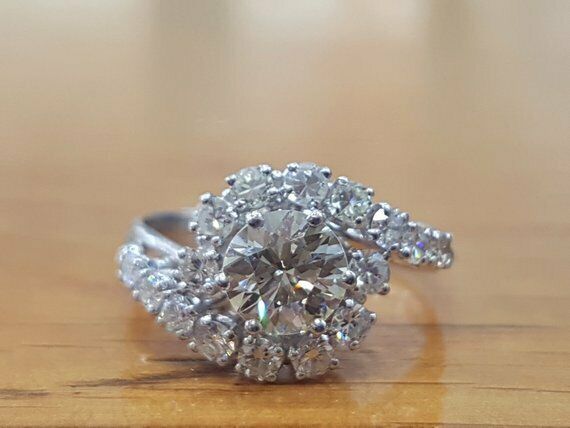 2.5Ct Round Diamond Swirl Twist Solitaire Engagement Ring 14K White Gold Finish