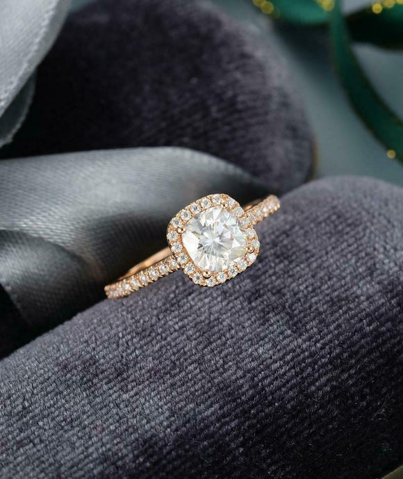 Halo Solitaire with Accents Ring 1.5ct Cushion Cut Diamond 14k Rose Gold Finish