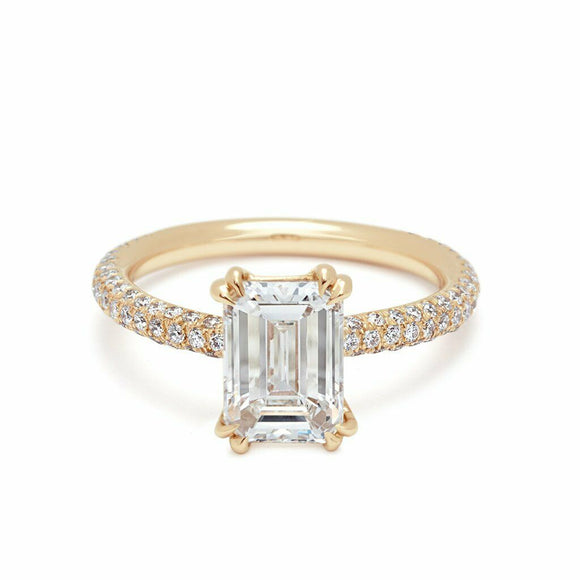 2ct Emerald Diamond Engagement Ring 14k Yellow Gold Finish Solitaire with Accent